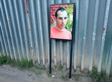 Портреты были изготовлены отдельно, а рамки сварены из надёжного прямоугольного профиля. Металл окрашен в чёрный цвет.